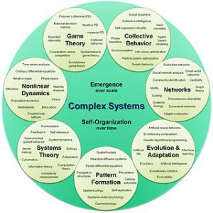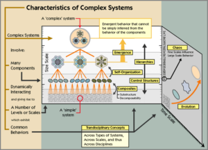 Essential characteristics: fields involved include Mathematics, Physics, Computer Science, Biology, Philosophy of Science and Epistemology; numerous components, nonlinearity, emergence, self-organization, dynamics far from equilibrium, multiscale behavior, sensitivity to initial conditions, adaptability, and the concept of the “Space of Experience”.